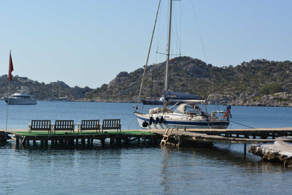 Am nächsten Morgen sind es noch 5 Meilen bis Bozburun. Dort legen wir im Hafen vor dem Restaurant "Osmans Place" an. Dort hab ich mit der Agentin für das Einklarieren abgemacht.